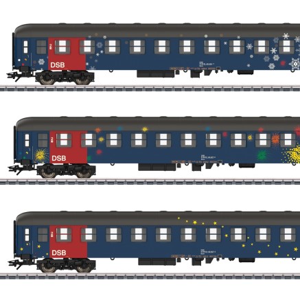 Die DSB betrieb in den späten 1980 und Anfang der 1990er Jahre diverse Touristikzug-Verbindungen ins Ausland. Speziell dafür wurden einige Liegewagen des Typs Bmc von der DB übernommen und mit speziellen Lackierungen versehen. Dieses Set beinhaltet 3 solche Liegewagen mit unterschiedlichen Gestaltungen.