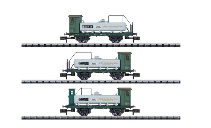 Die neuen MINITRIX Modelle bilden zunächst zwei dieser Varianten ab. Die komplette Neukonstruktion ist äußerst filigran ausgeführt. Das 3er Set gibt drei gebremste Wagen mit bzw. ohne Bremserhaus wieder.